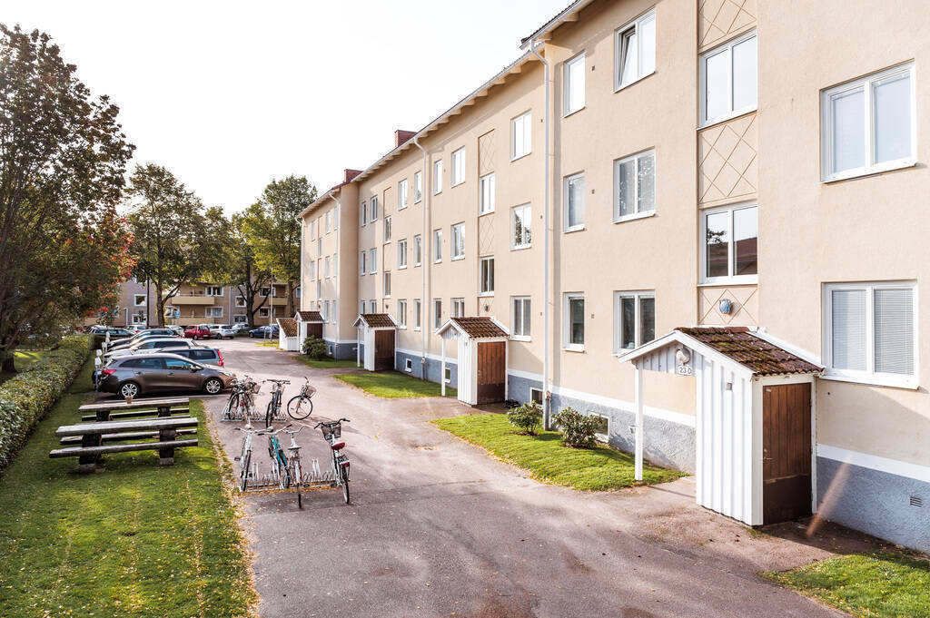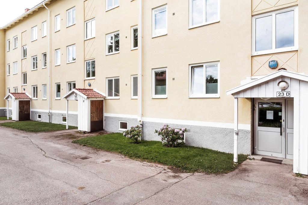 ett hus med adress Engelbrektsgatan 23 A-D. 24 lägenheter och 16 st bilplatser med motorvärme.