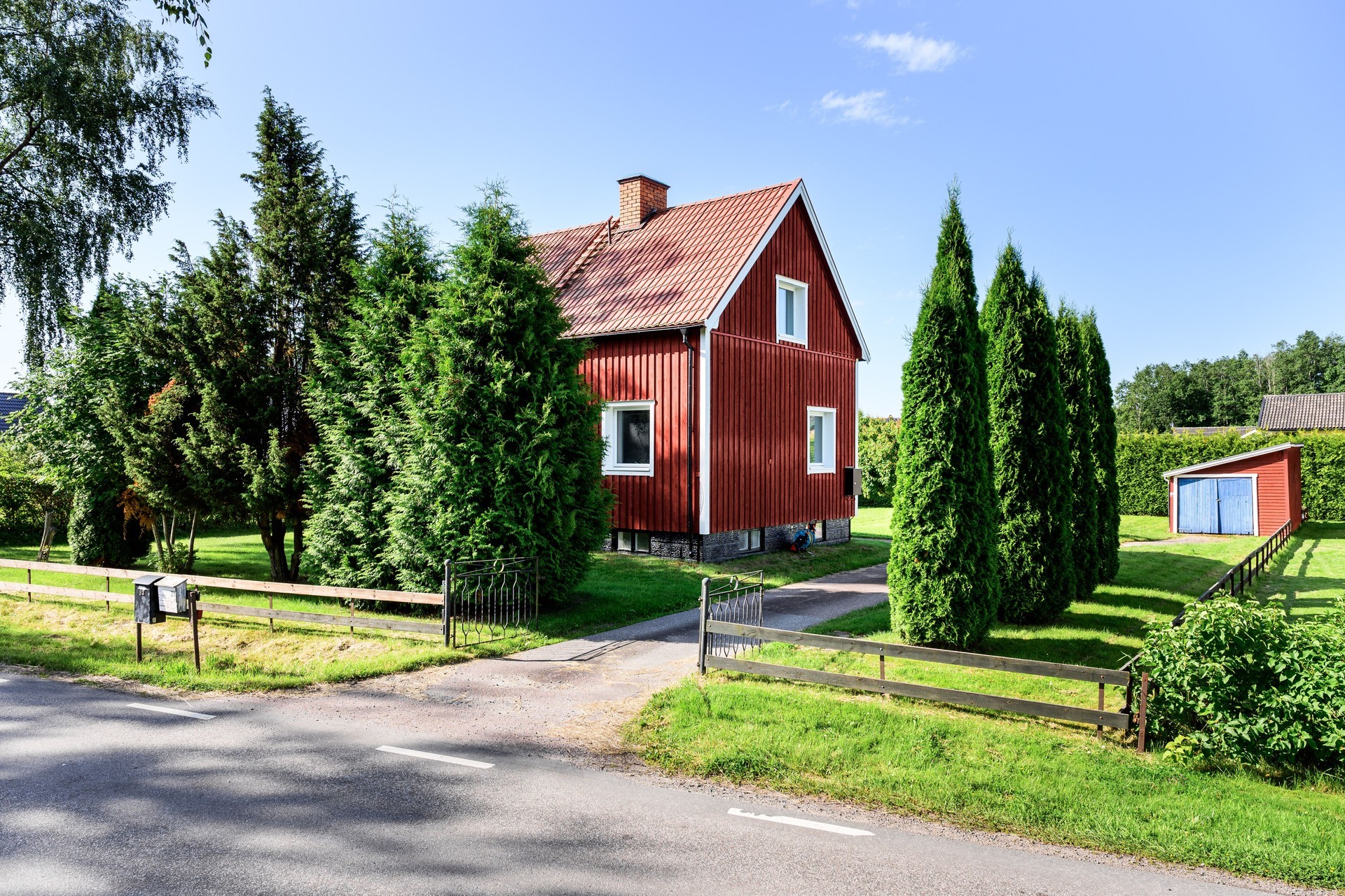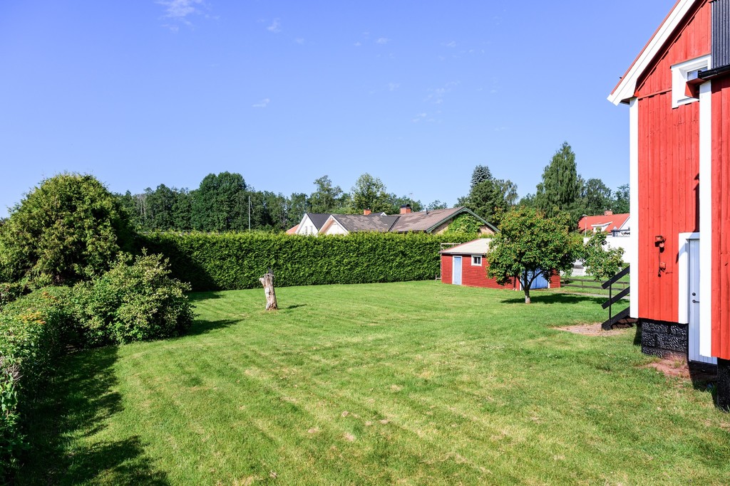 Lättskött tomt och mindre garage/förrådsbyggnad.