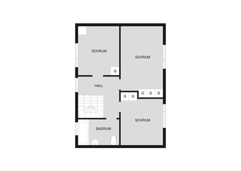 Tre sovrum med laminatgolv.