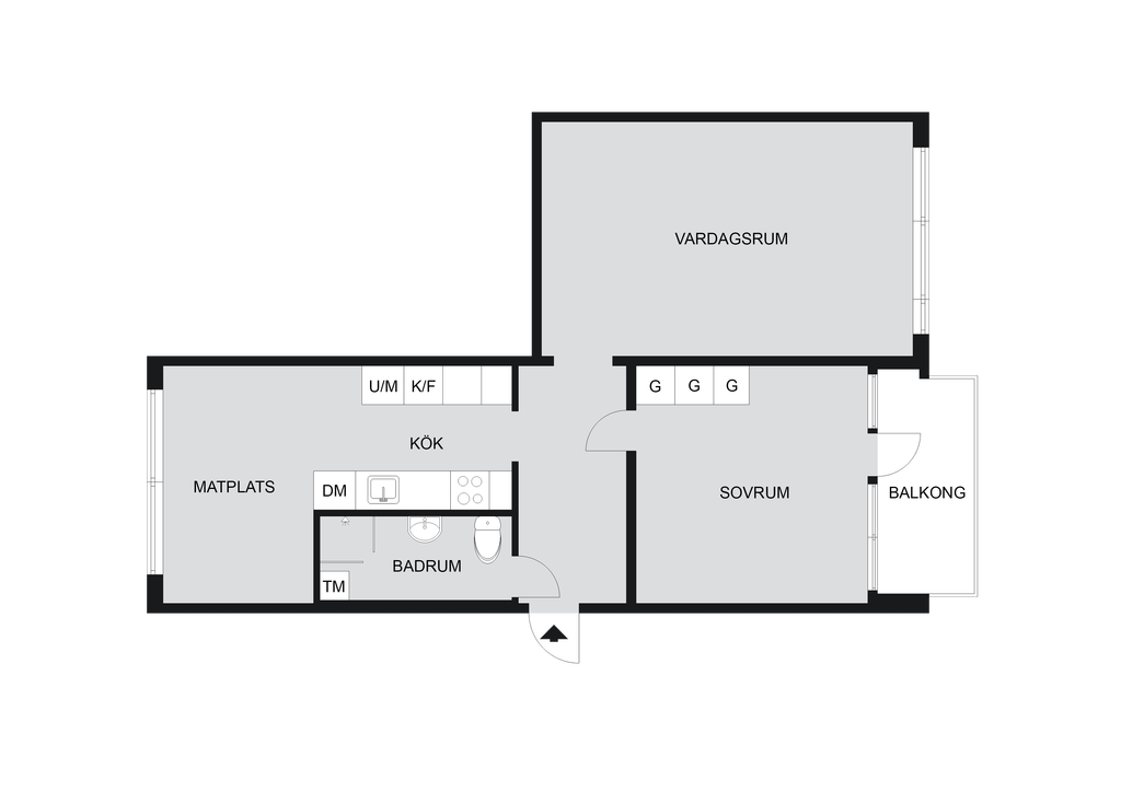 Vardagsrum med utgång till balkongen.