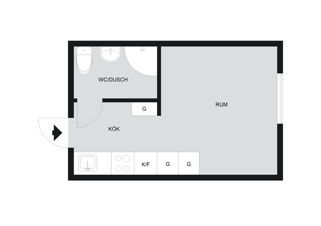 1 rum och kök · 20.5 kvm · 370 000kr1 535 kr/mån · Våning 3