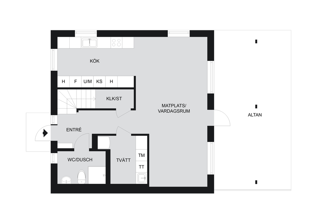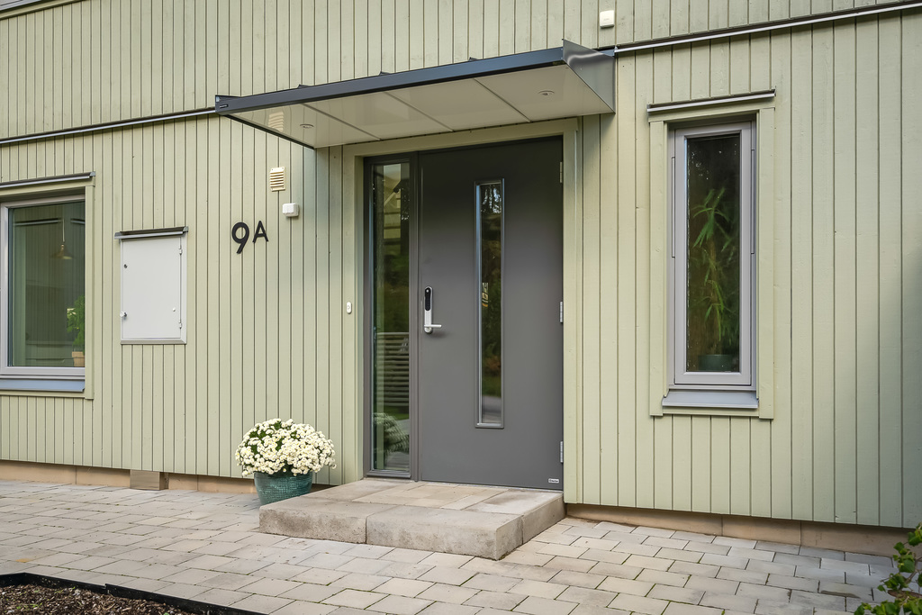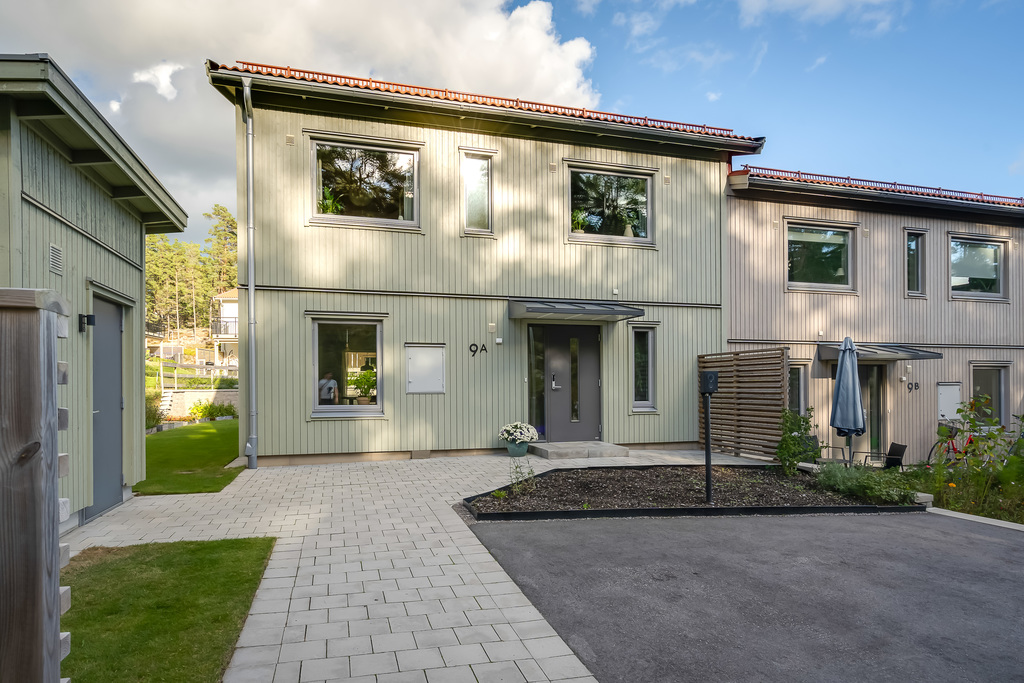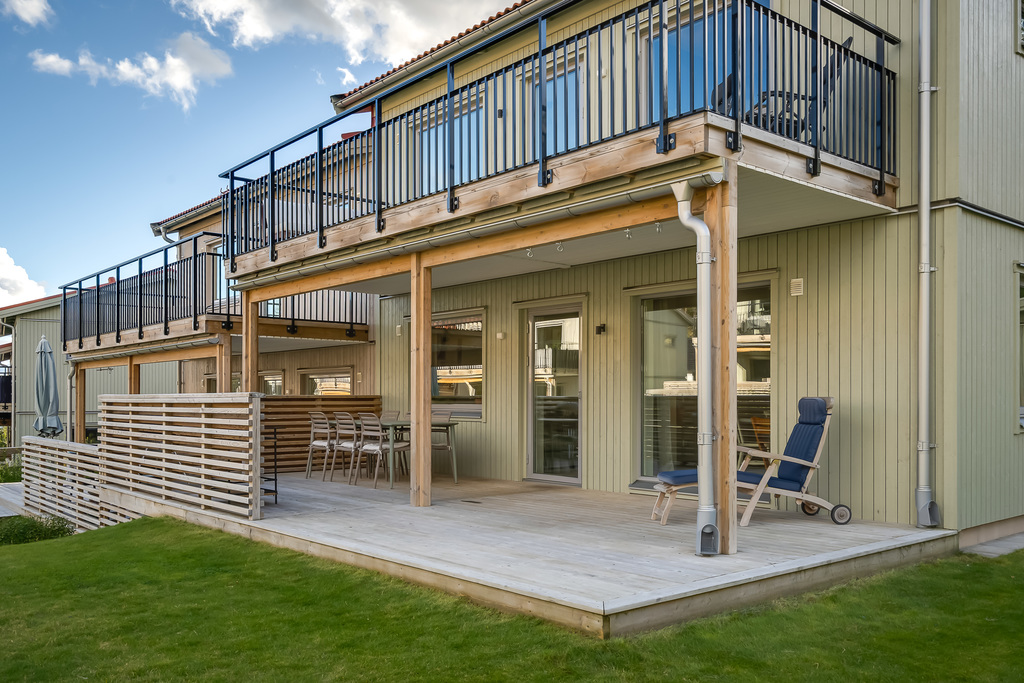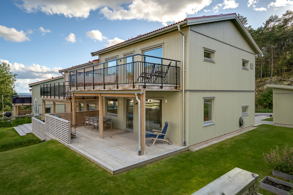 Barnfamiljer uppskattar de sociala ytorna – både inne och ute. Från vardagsrummet nås altanen och tomten med plats för lek och umgänge. På övre plan finns en rymlig balkong med soligt läge.
