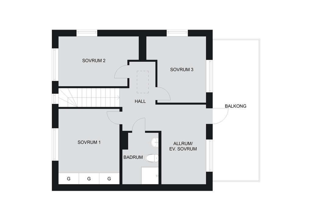 Allrum som även går att använda som ett 4:e sovrum. Härifrån har du även utgång till balkong.