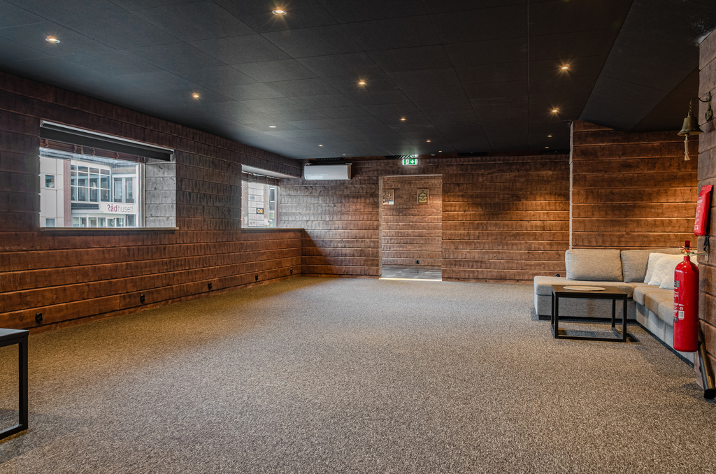 Bakom huvudytan finns ett flexibelt utrymme som kan användas som lounge, pausutrymme eller kreativ arbetszon. Här finns också ett modernt pentry med induktionshäll, diskmaskin och goda förvaringsmöjligheter. Dessutom finns en personaltoalett med dusch, helkaklad för extra komfort.
