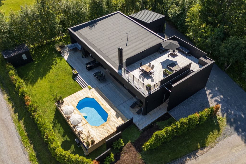 Hustaket bjuder på ytterligare en exklusiv upplevelse – en privat takterrass med utsikt över omgivningarna, skapad för långa middagar, stilla morgonkaffe eller avkoppling under stjärnhimlen. Härifrån har du ett eget, avskilt perspektiv över tomten och grönskan omkring.