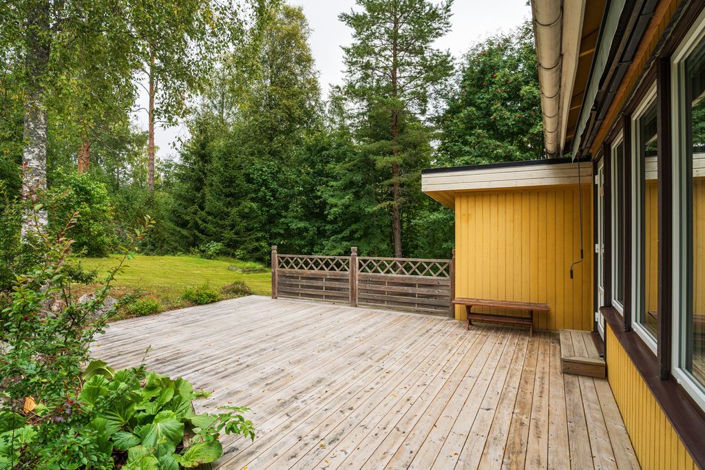 Tomten om 1 055 kvm är naturnära och ger en privat och mysig känsla. På baksidan finns en rymlig altan som omringas av grönska och natur, vilket skapar en trivsam plats för både avkoppling, umgänge eller trädgårdsprojekt.