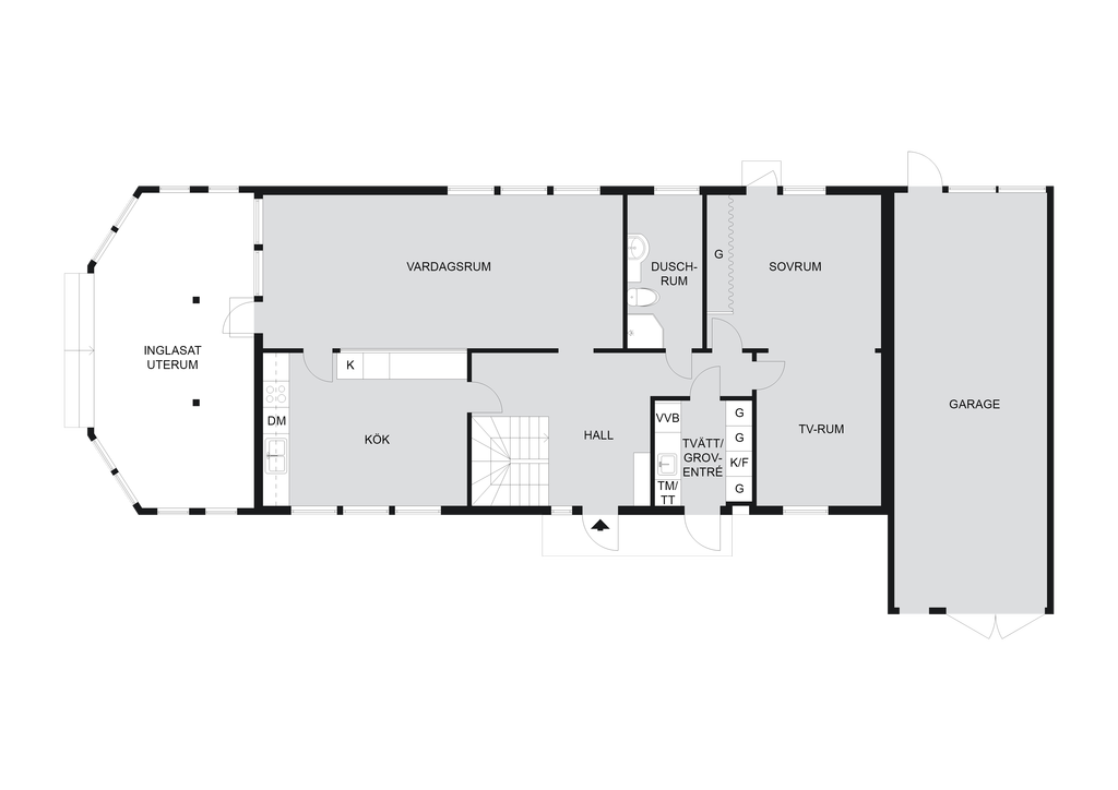 Det ljusa och rymliga vardagsrummet har vacker ekparkett på golvet och generösa glaspartier som skapar en härlig öppenhet mot köket. Från vardagsrummet nås det inglasade uterummet, vilket ger en sömlös koppling mellan inne och ute – perfekt för både vardag och fest!