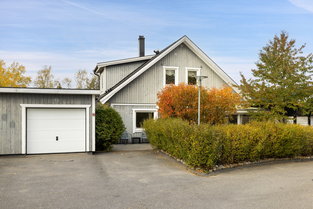 Fantastisk utomhusmiljö med öppen plan gräsyta och prunkande växtligheter. Runt fastigheten finns anlagd trätrall med uteplatser, vackra planteringar, grönskande buskar samt stora gräsytor för aktiva barnlekar. På tomten finns även ett garage med separat förrådsdel samt uppfart som rymmer ytterligare bilar.
