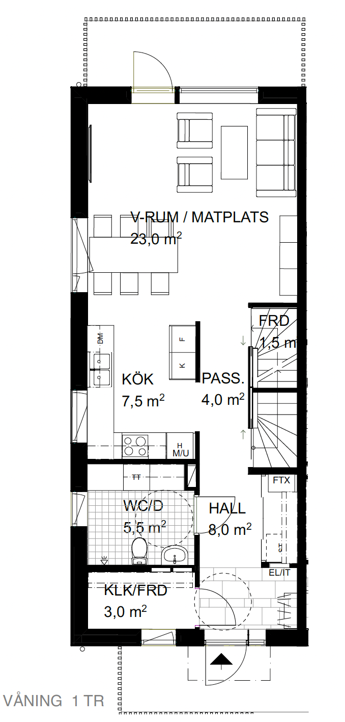 Stilrent kök från kvalitativa svensktillverkade Vedum, utformat med släta vita luck- och lådfronter, mörk bänkskiva och stänkskydd i vitt kakel. Köket ligger med öppen planlösning mot vardagsrummet vilket skapar sociala ytor för hela familjen att samlas kring. Köket är fullutrustat med integrerade vitvaror så som diskmaskin, spis, fläkt, ugn, mikro samt fullstor kyl och frys. Genomgående golv i ekparkett likt övriga delar av bostaden.